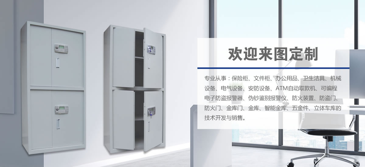 ? 專業(yè)從事:保險柜、文件柜、辦公用品、衛(wèi)生潔具、機械設備、電氣設備、安防設備、ATM自動取款機、可編程電子防盜報警器、偽鈔鑒別報警儀、防火裝置、防盜門、防火門、金庫門、金庫、智能金庫、五金件、立體車庫的技術(shù)開發(fā)與銷售